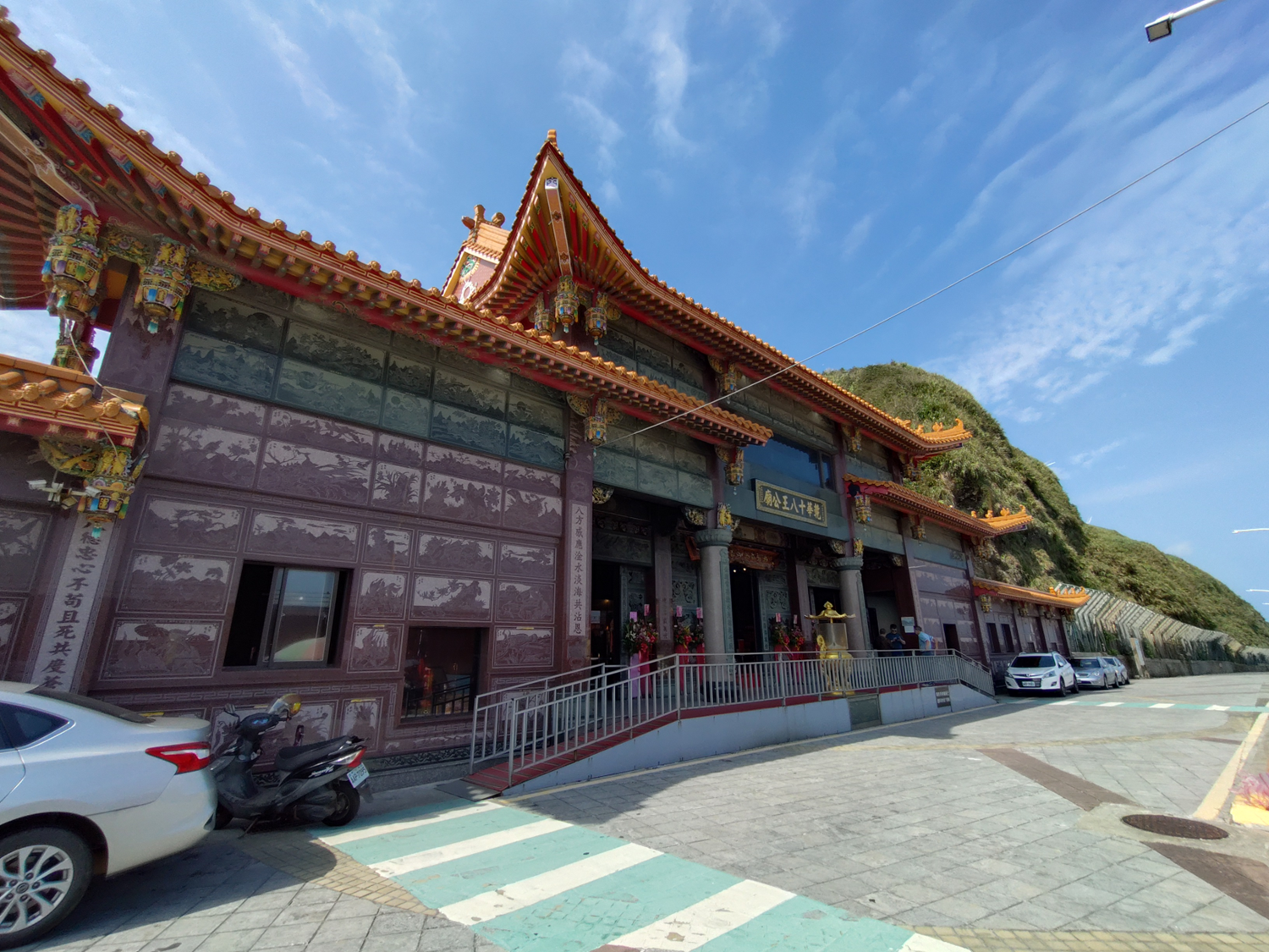 因為信眾認為命喪在陌生大海的十八王公是溺死的,會怕冷,所以以熱食麻油雞與油飯祭拜,廟旁一些攤商會販賣這些熱食。但油飯以盤子裝不好攜帶,後來劉家肉粽創始人將它改為肉粽。漸漸的越來越多攤商販賣肉粽,擴展到石門沿路都有賣肉粽的商家,幾十年來成為石門很重要的產業,公所也舉辦「肉粽節」推廣肉粽。肉粽已經不只是在端午節祭拜屈原的祭品,還會拿來祭拜十八王公。此廟的文創商品:肉粽,為石門創造一大產業,劉家肉粽以網路行銷擴展銷售管道與宅配服務,成功打出知名度,賺進龐大的利潤,石門農會的網路銷量每年端午營業額數百萬元,全部業者銷售額合計占全台灣的五分之一。